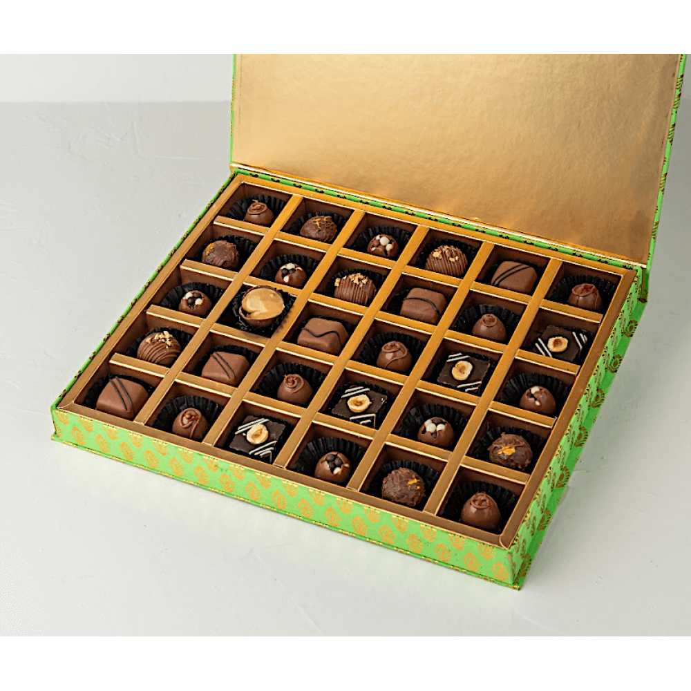 Our Chocolates and Dates Diwali Gift Box brings together the best of both worlds—delicious gourmet chocolates and premium dates, all beautifully packaged to add a touch of luxury to your Diwali celebrations.