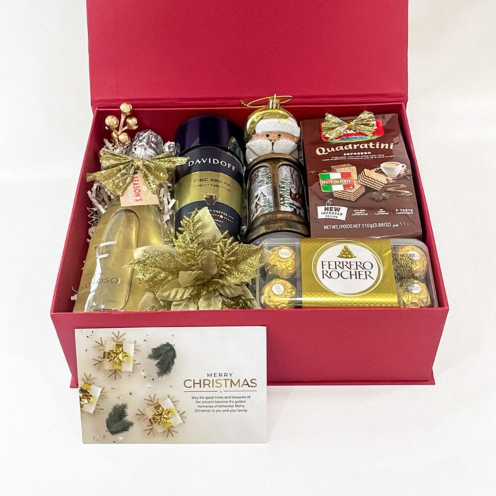 The combination of rich coffee, sparkling water, and festive chocolates makes this gift box a perfect choice for holiday gifting or enjoying with loved ones. Beautifully presented, it’s a lovely way to share the joy and indulgence of Christmas.