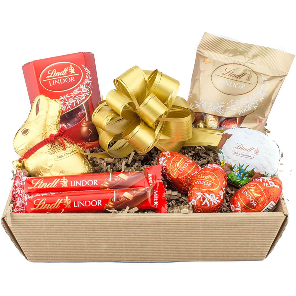 Sweeten the season with  Fantastic Easter gift for the chocolate lover  Contains variety of Lindt Easter chocolates . A Sparkle decore make this thoughtful gift, all bundled up with ribbons, bow and GiftWrapping.