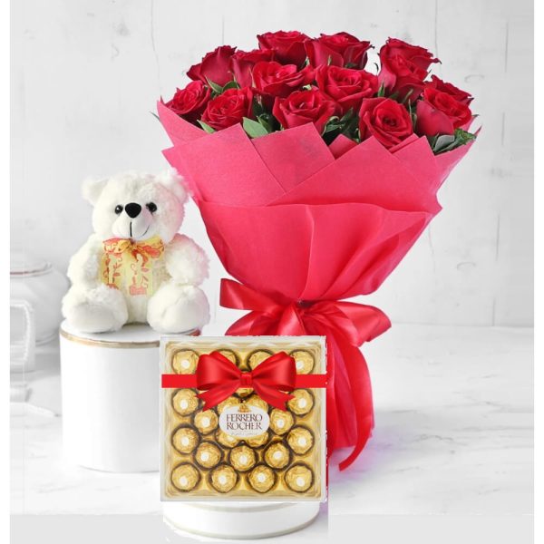Surprise Gift Roses, ferrero & teddy