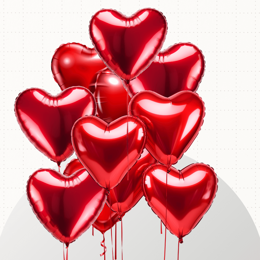 Celebrate love in style with our Red Heart Shape Foil Balloon Bouquet, featuring 12 stunning heart-shaped balloons.