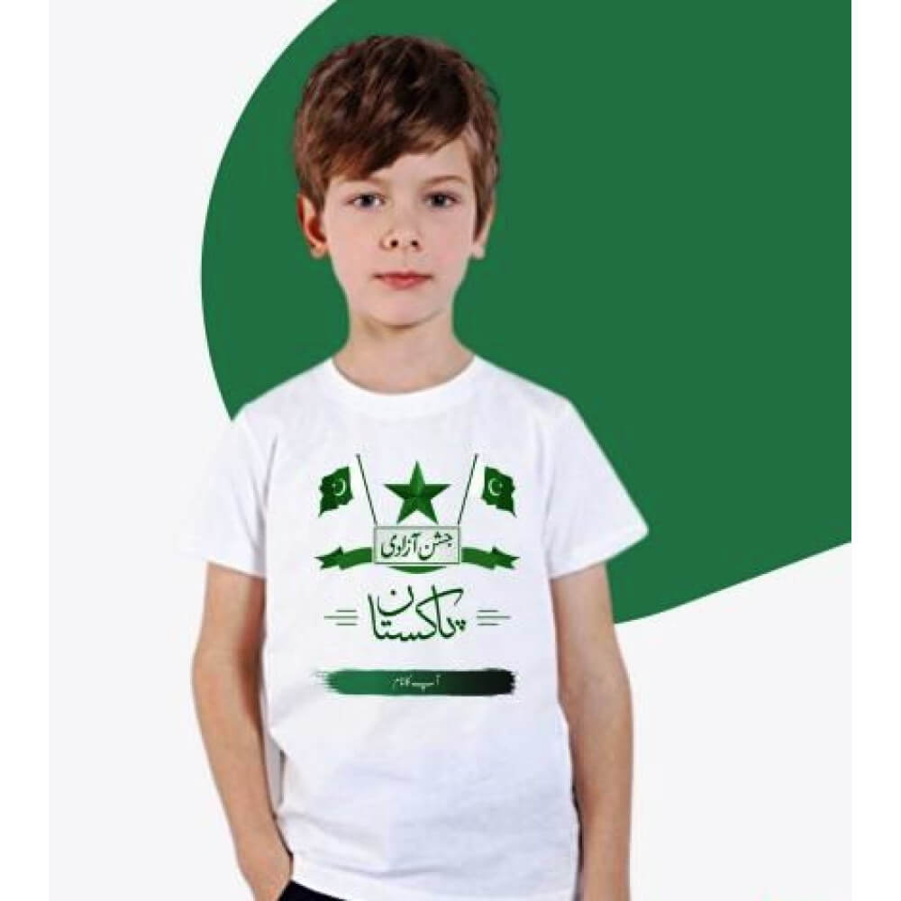 celebrate the independence day of Pakistan on 14th August. Personalized your t-shirt with your country flag, name, message or any logo.