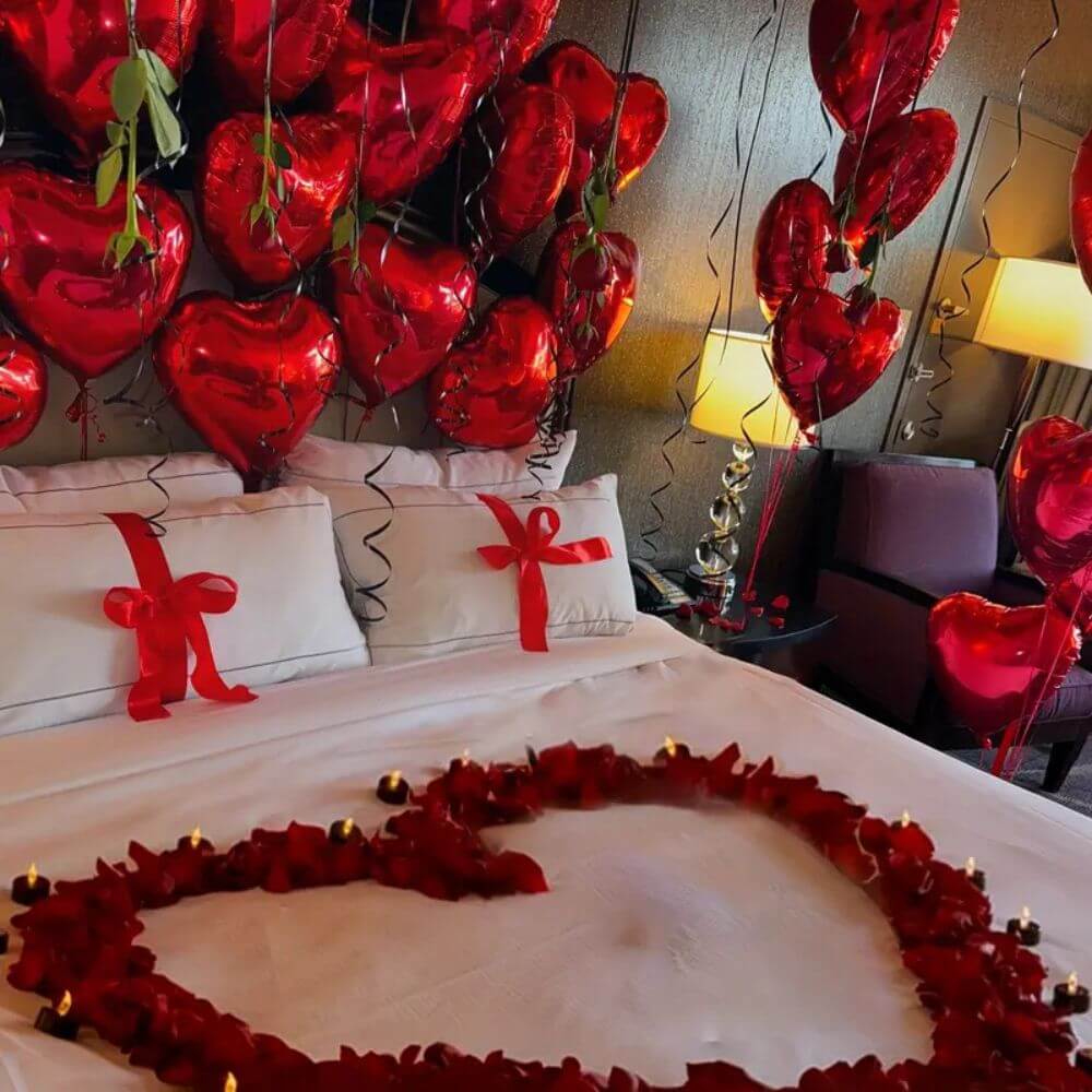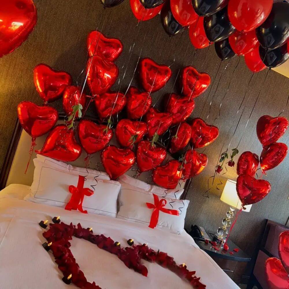 This beautiful set is ideal for creating a romantic atmosphere for Valentine’s Day, weddings, anniversaries, or birthdays. The heart-shaped balloons, filled with helium, add a floating charm to your decorations, while the luxurious red rose petals spread a touch of elegance and romance.