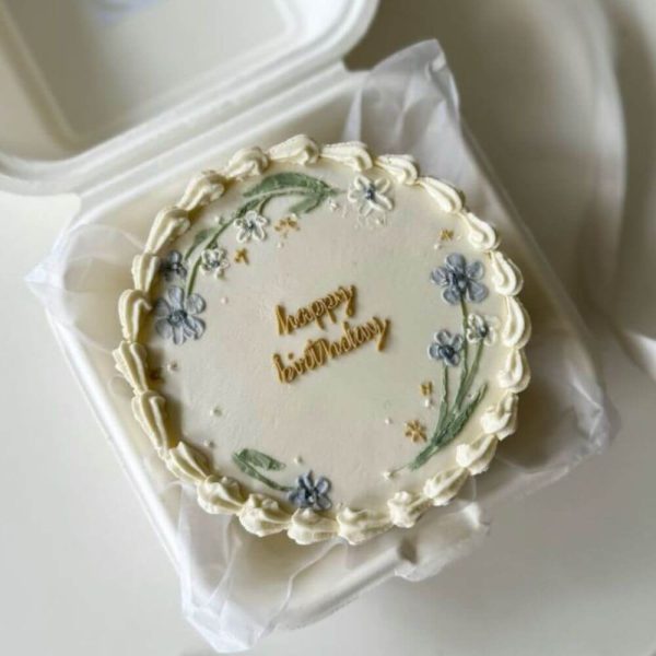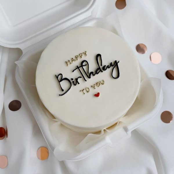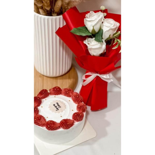 Happy Birthday Bento Cake (500g) with 5 Pink Fresh Roses Hamper
