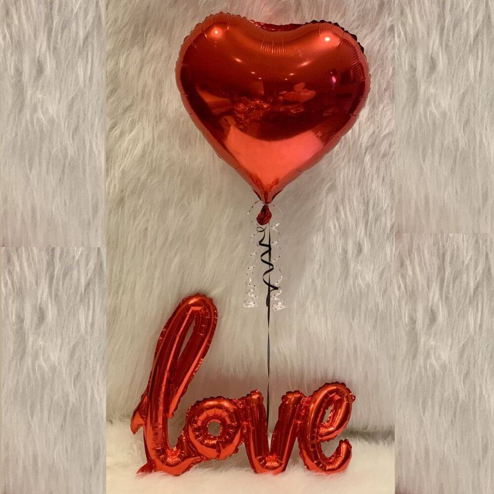 The shiny foil banner and bright heart-shaped balloons create a perfect setting for making unforgettable memories with your special someone.