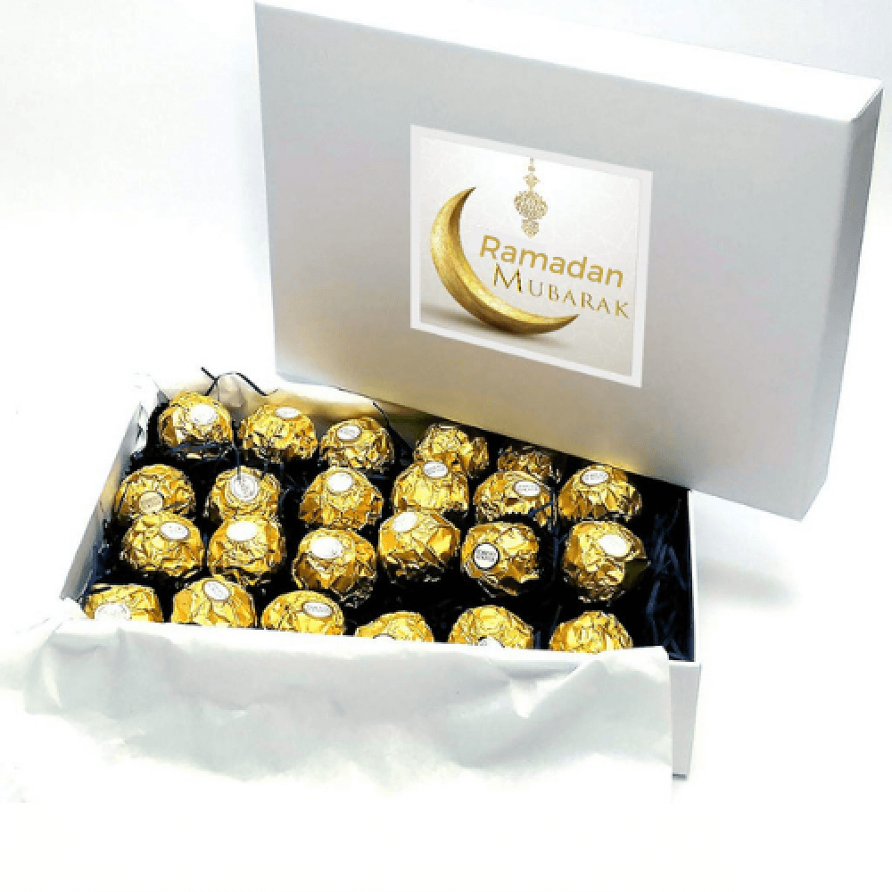 Elegent Box Filled with FERRERO ROCHER may be small in stature but still holds around 24pcs yummy & chrispy chocolates.