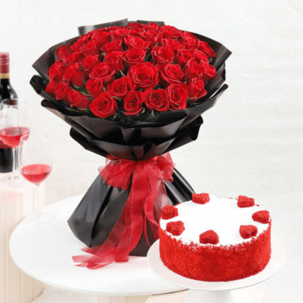Wrapped In Love & Delight From friends to lovers, here’s your chance to woo her with romance. Wrapped In Love & Delight is the perfect combination of beauty and sweetness, featuring 50 freshly picked fragrant roses and a mouth-watering 500g red velvet cake.